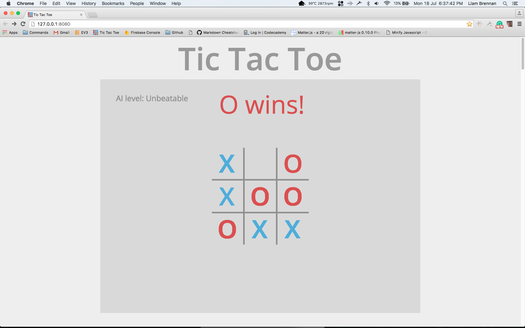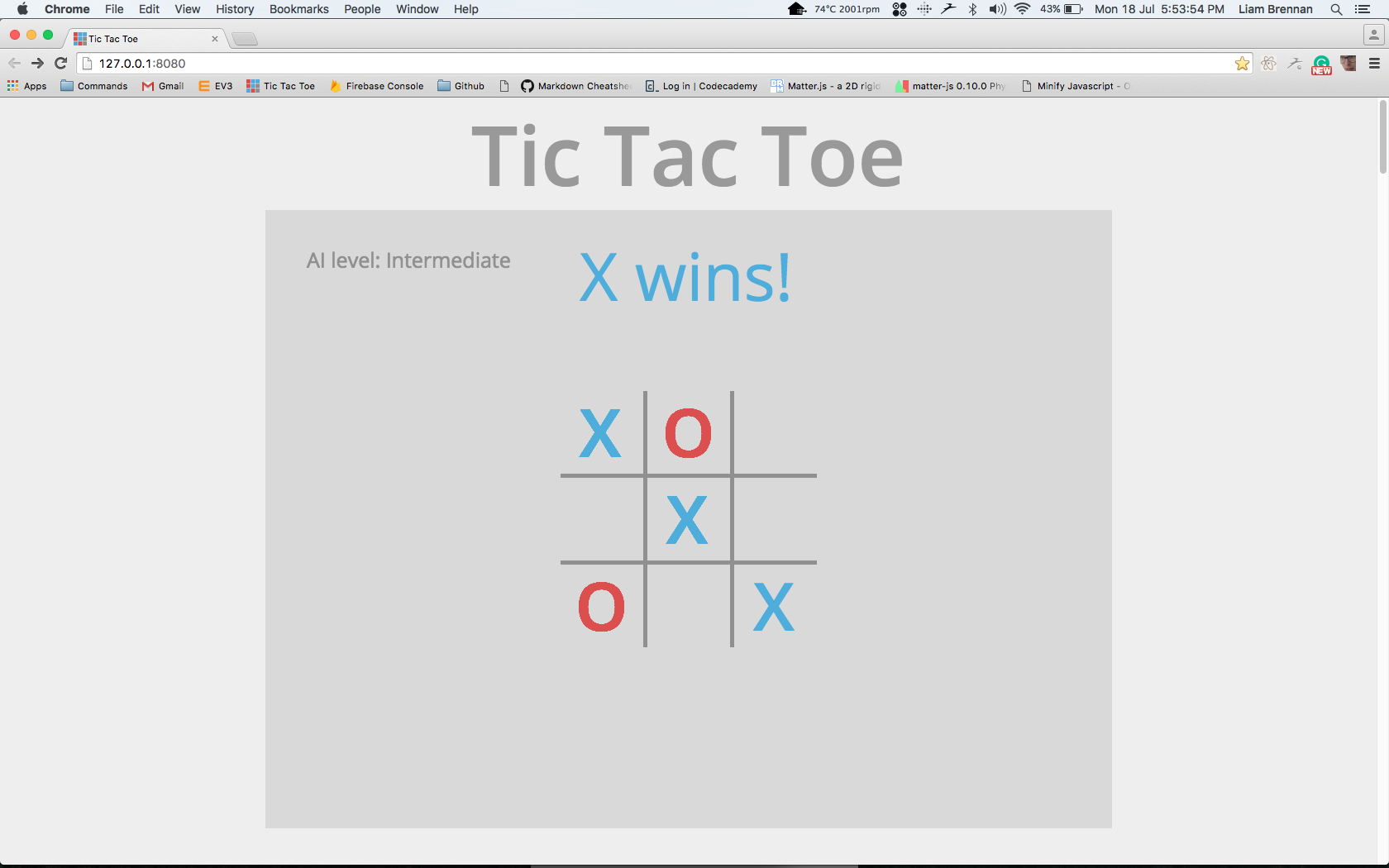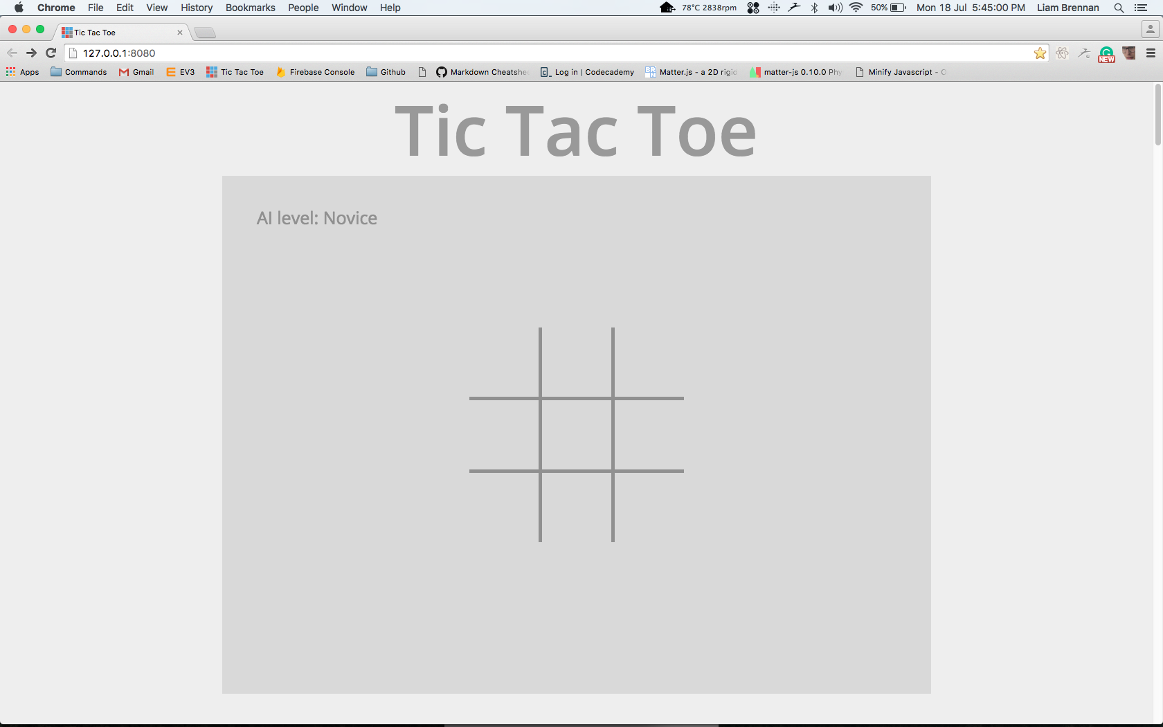 Well, not quite. Just for fun I decided to add a few different levels of AIs that slowly get better as you win against them. I wrote the functions, added a AI level display and added it into the win condition to go to the next level of AI.