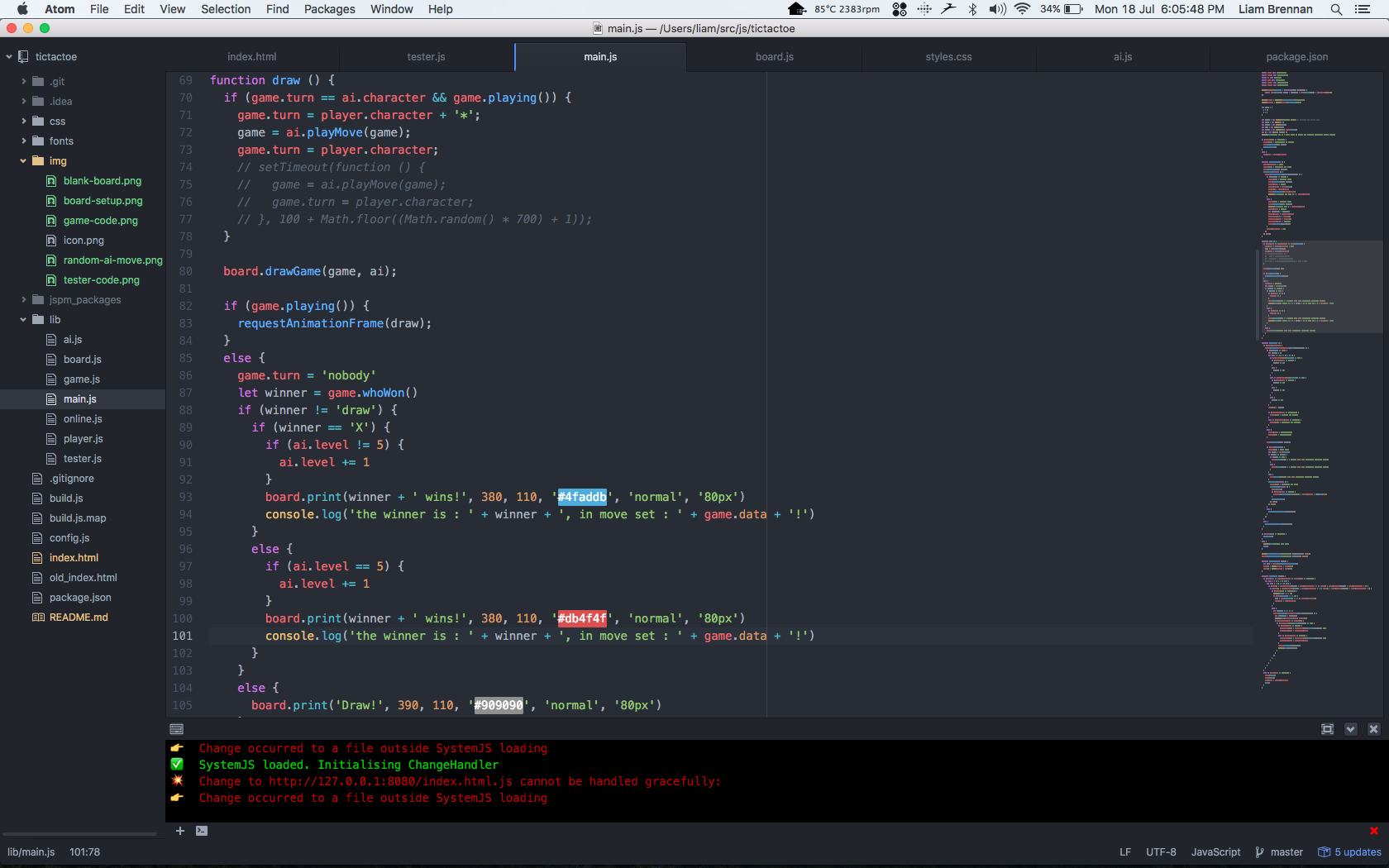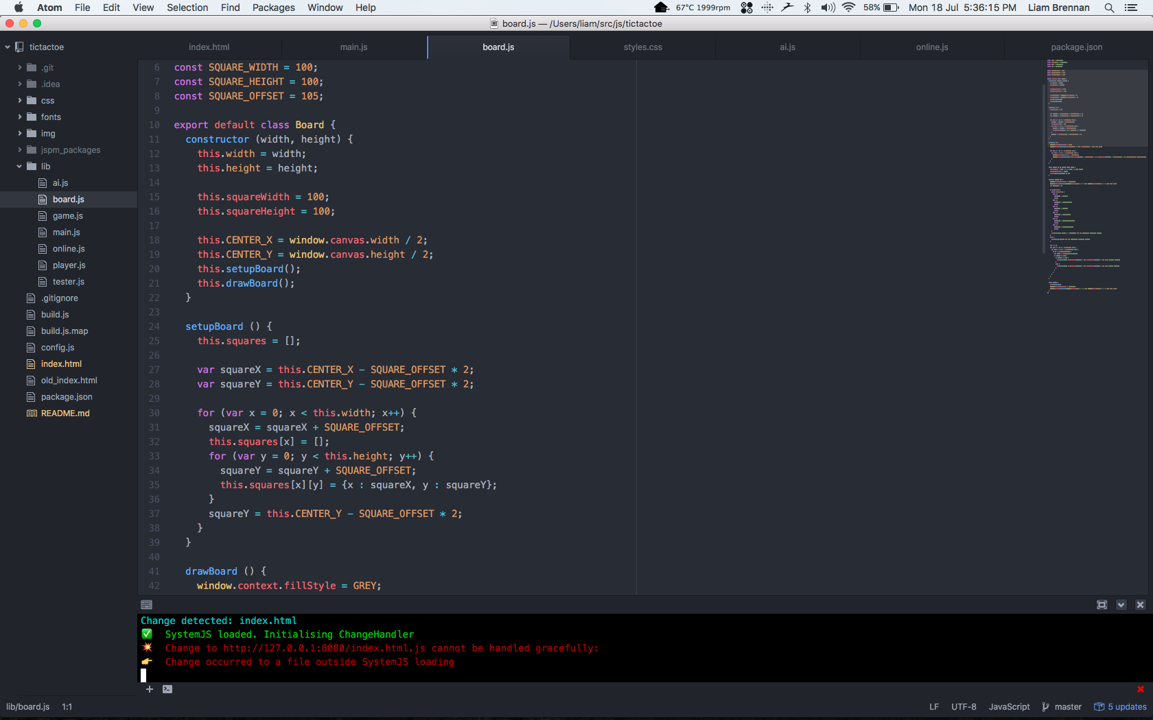 After trying out Webpack I moved onto Jspm, another web server and found it more successful. So I npm installed a few libraries and got babel running (for es6 javascript) and started work on the game board.