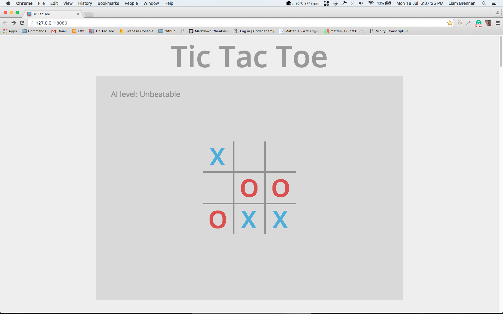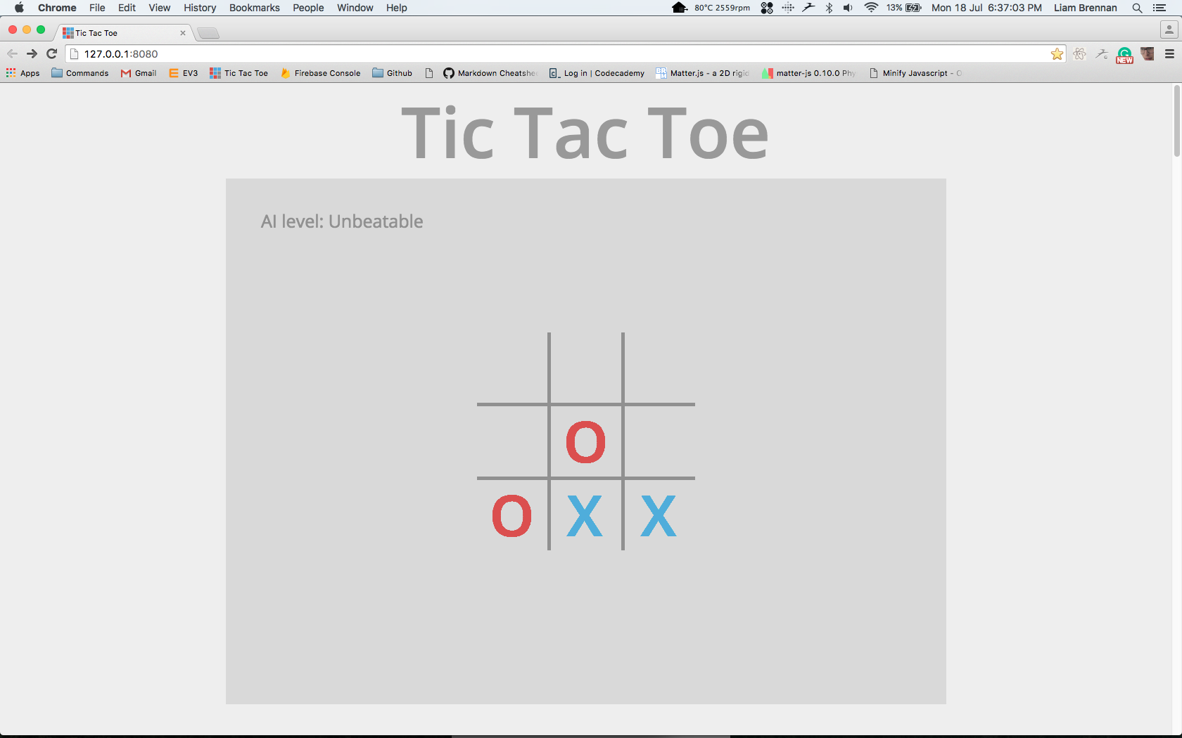Tic tac toe is a fairly simple game. With a maximum of 9 possible moves at any point in the game constructing an Ai isn’t incredibly hard, but it still has its implications.